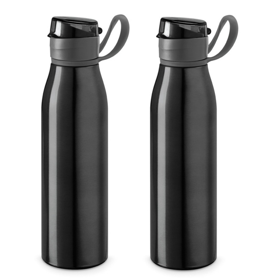 Aluminium waterfles/drinkflesmet klepdop en handvat – 2x – zwart – 650 ml – Sportfles – Bidon